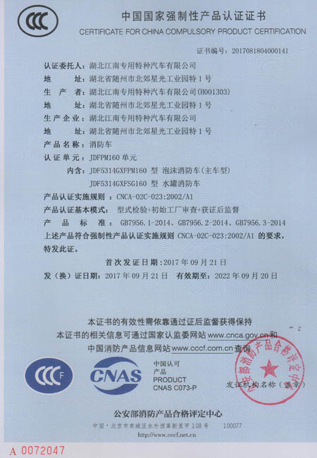 湖北江南消防車3C已經下來了,消防車可以上軍牌了