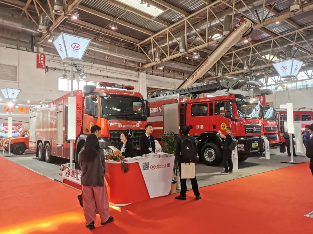 湖北江南專用特種汽車有限公司攜最新科技產品---奔馳底盤壓縮空氣泡沫車、32米舉高噴射消防車、泵浦消防車、勇士四驅遠程供排水搶險車、勇士四驅布管車/水帶敷設車精彩亮相,向觀眾展示安全、快捷、智能、高效的應急救援解決方案及系列產品。